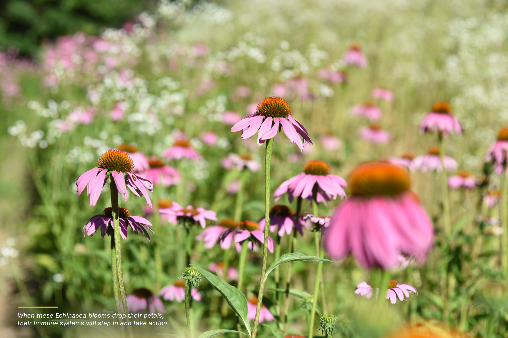This time of year, you can look around and see leaves and petals falling from trees and flowers on a regular basis. That process is actually a chance to observe a plant’s immune system in action. Every petal that, for example, an Echinacea flower sheds leaves behind a tiny wound or opening in the plant. (While not a perfect analogy, think of what happens when you get a paper cut.)