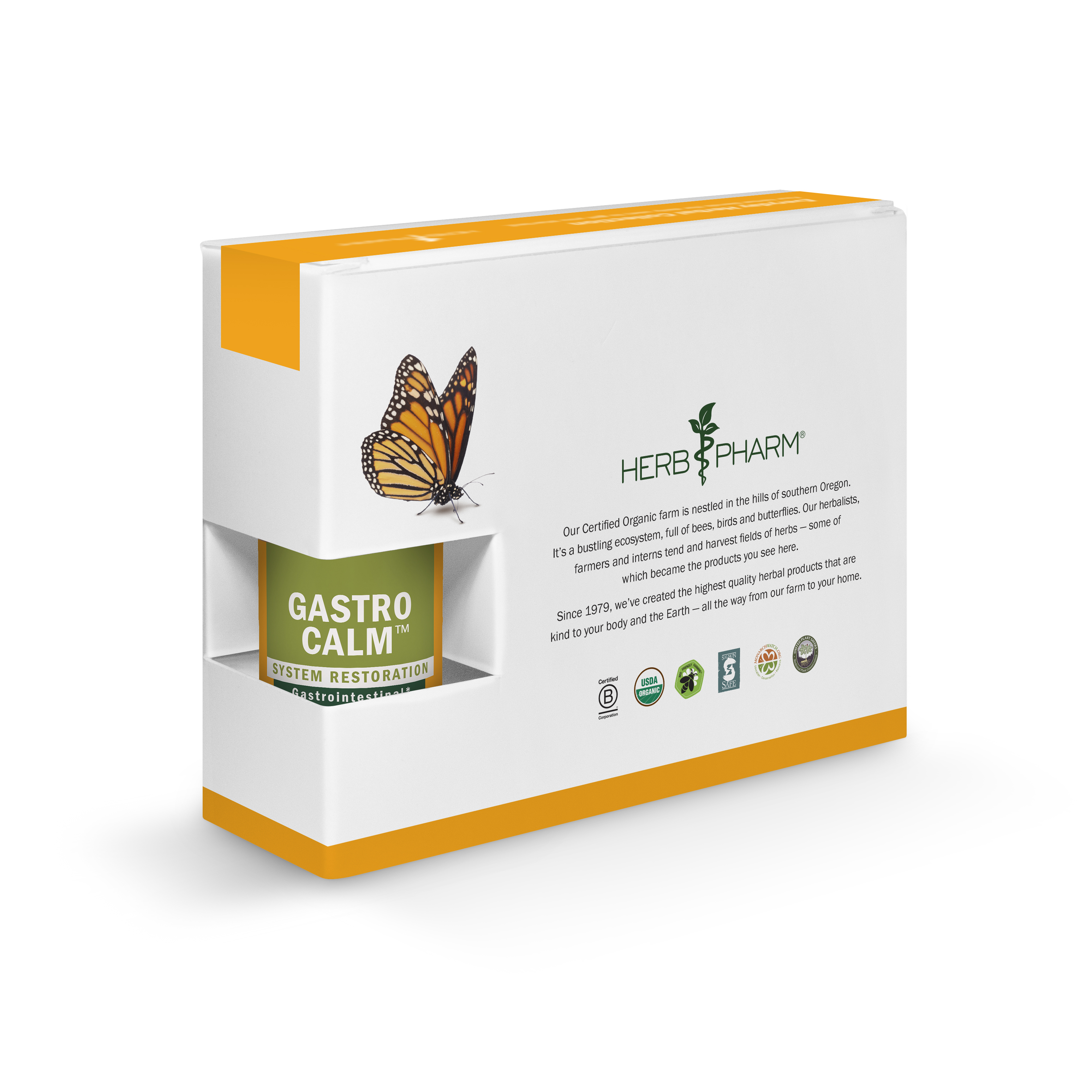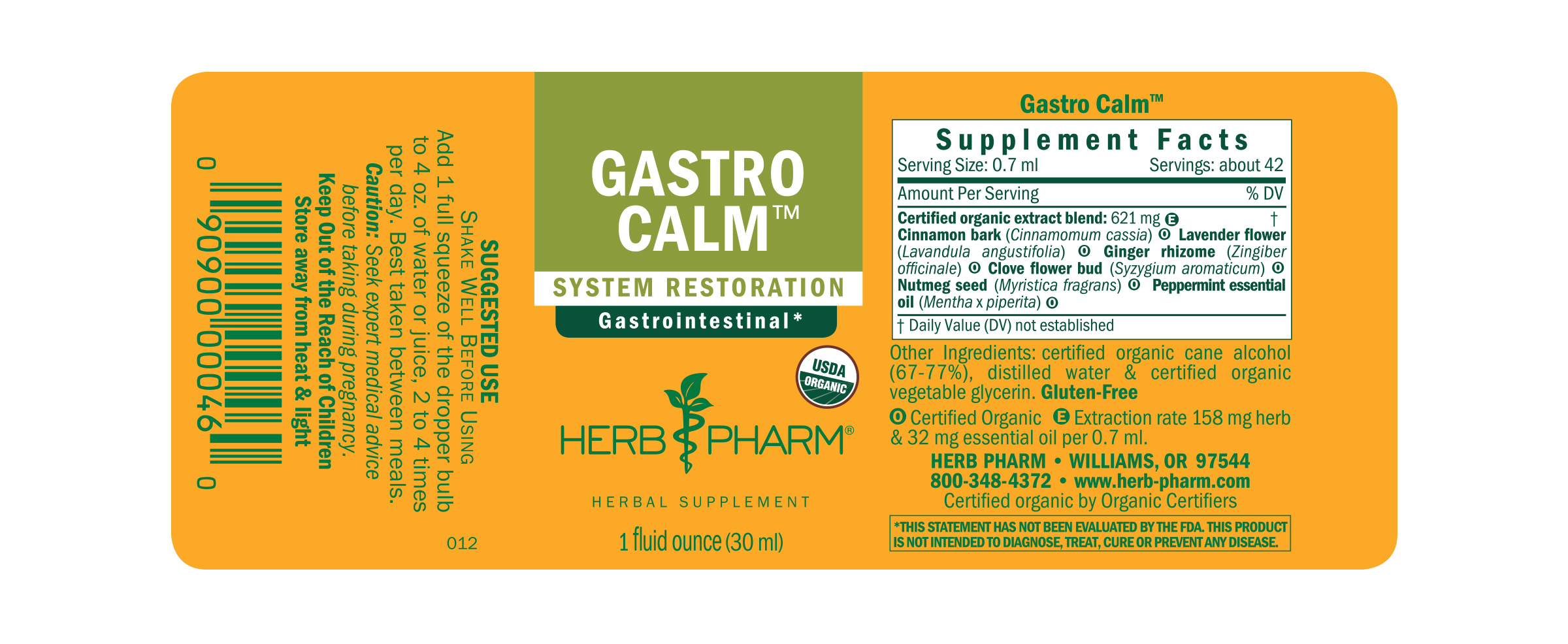 Gastro Calm™ features Cinnamon extracted from the bark of Certified Organic Cinnamomum cassia trees. To assure thorough extraction of Cinnamon's aromatic oils and resins, the bark is harvested and carefully shade-dried, then thoroughly extracted. The formula also features Ginger extract from the rhizome of Certified Organic Zingiber officinale plants.