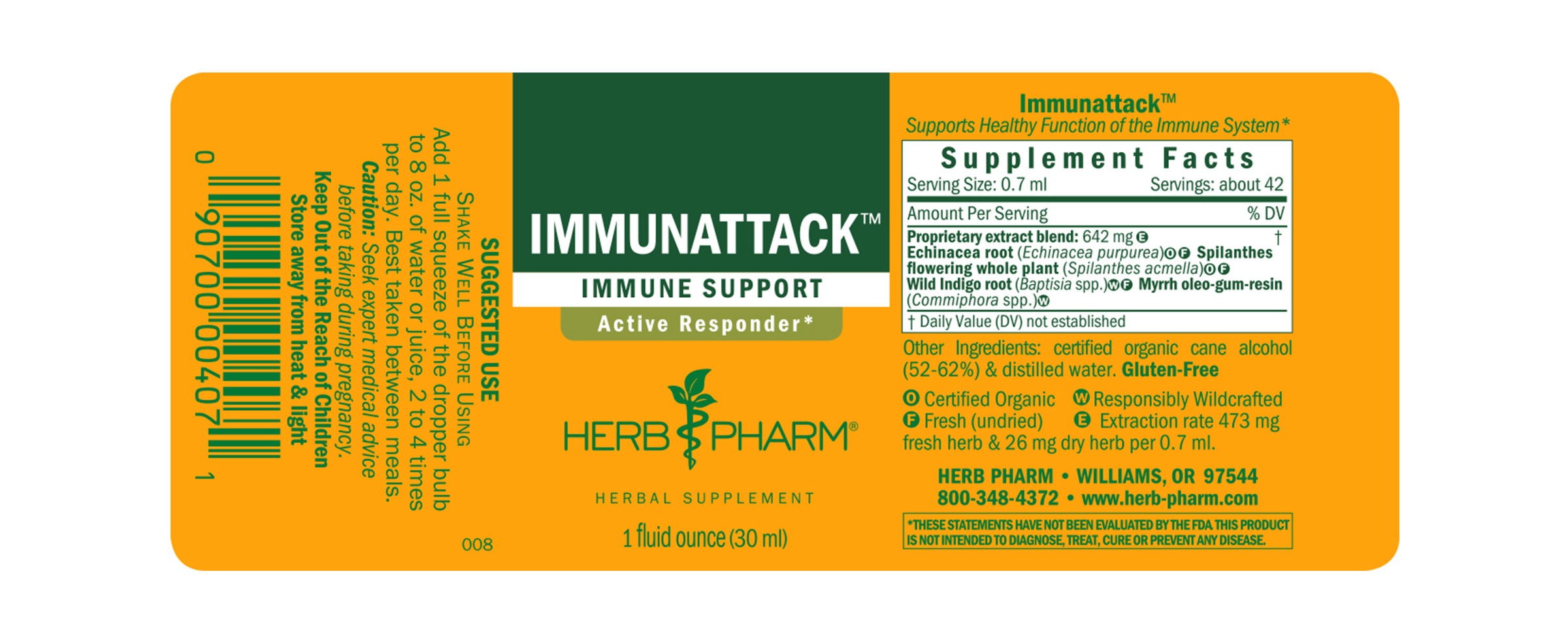 Immunattack features Echinacea extract prepared from the fresh root of Certified Organic Echinacea purpurea plants. It also features Wild Indigo extract prepared from the fresh root of Baptisia spp. plants that have been responsibly wildcrafted from their native environments.