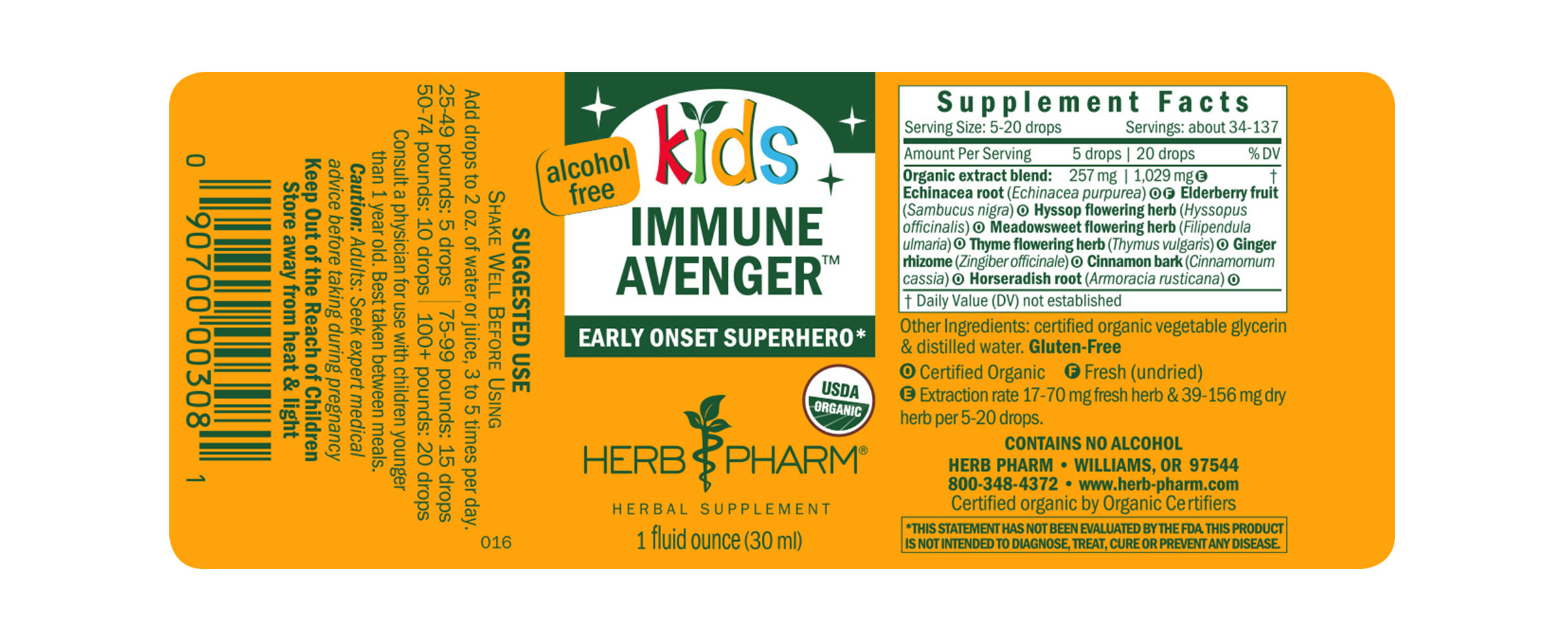 Kids Immune Avenger features Echinacea extract produced from the root of Certified Organic Echinacea purpurea plants. It also includes Black Elderberry extract prepared from the fully ripened berries of Certified Organic Sambucus nigra trees.