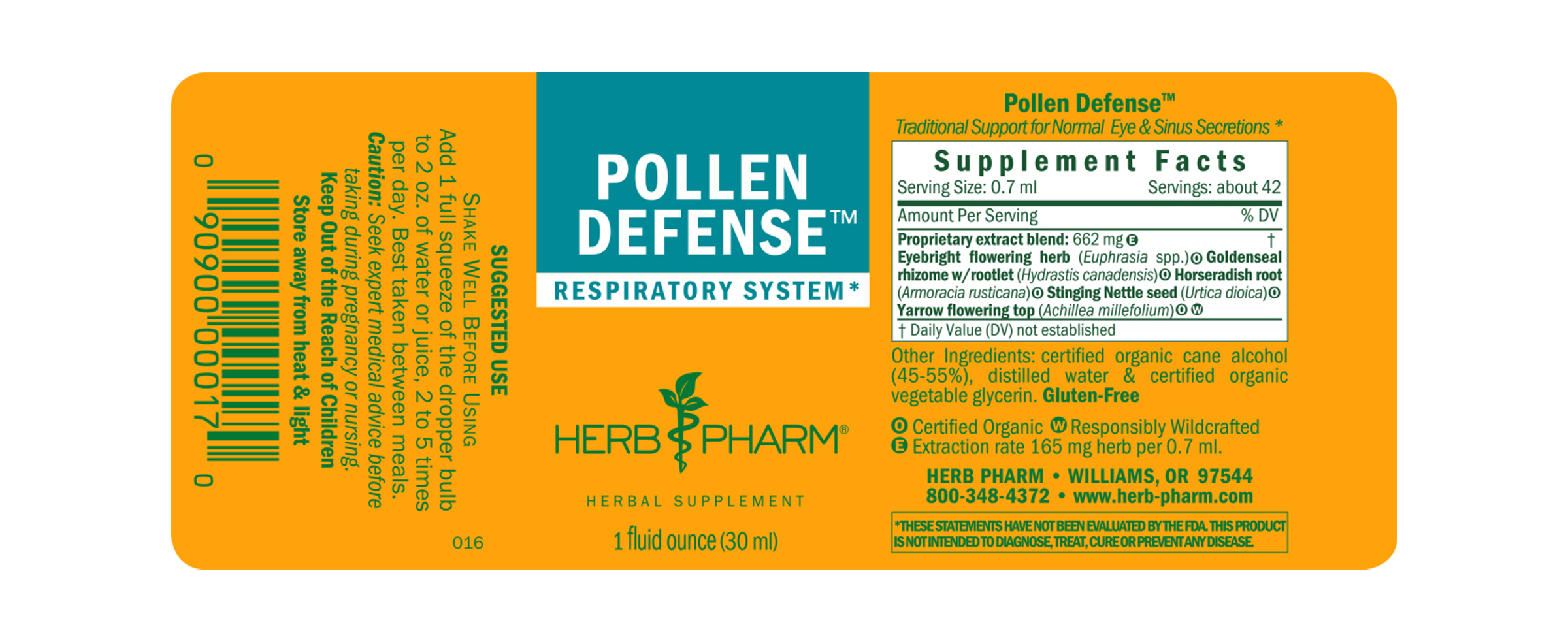 Pollen Defense features Eyebright extract prepared from the flowering herb of Certified Organic Euphrasia spp. plants. It also features Stinging Nettle extract prepared from the seed of Certified Organic Urtica dioica plants.