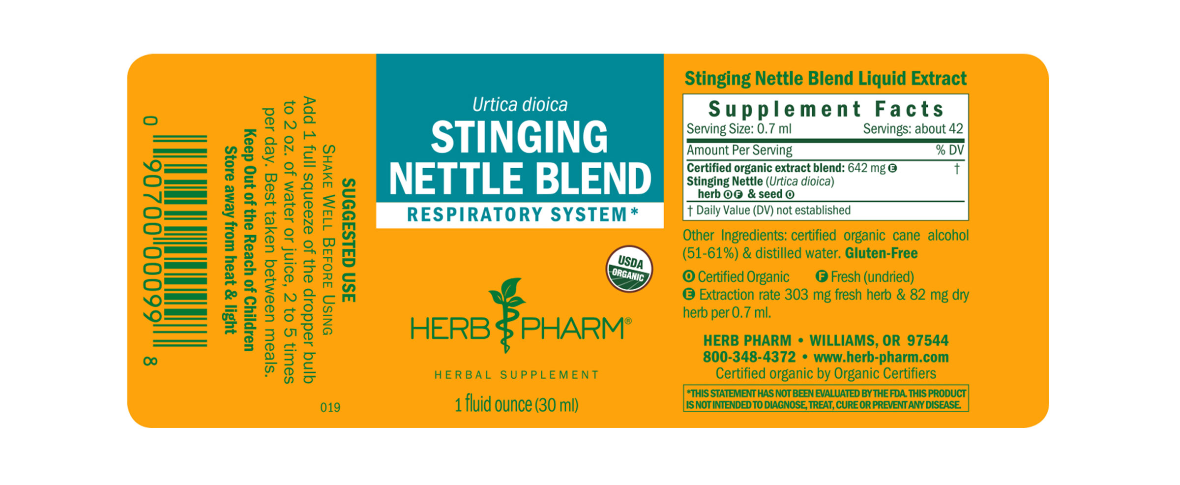 We prepare Stinging Nettle blend from the extracts of fresh herb and dried seeds of Certified Organic Urtica dioica plants. The herb and seed are extracted separately and then blended.